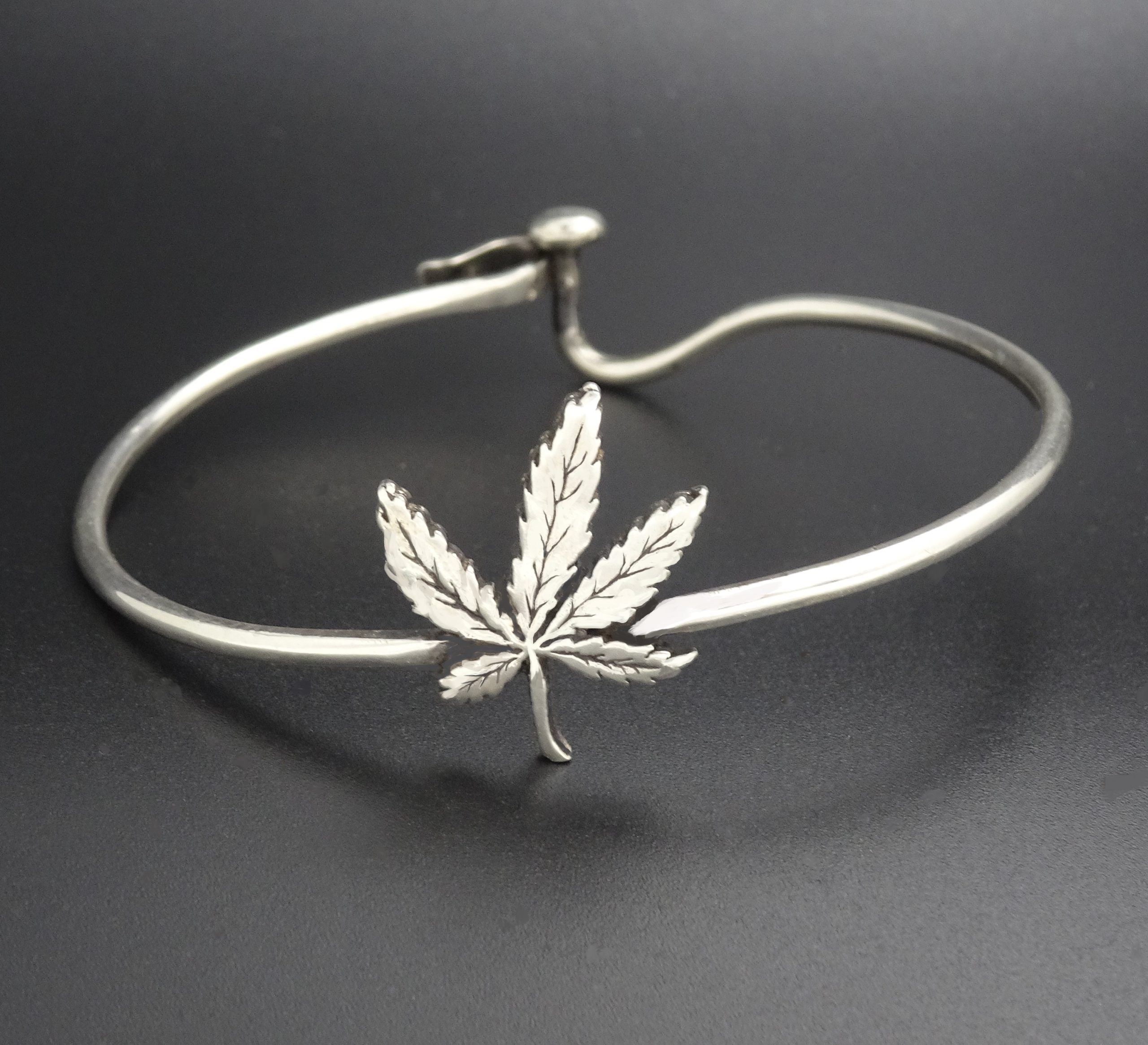 CANNABIS LEAF CLASP BRACELET STERLING SILVER
