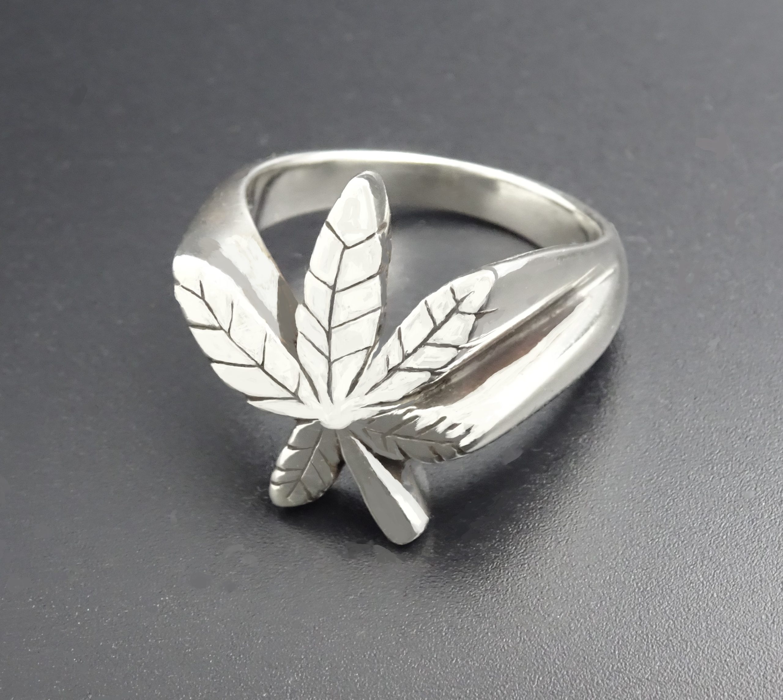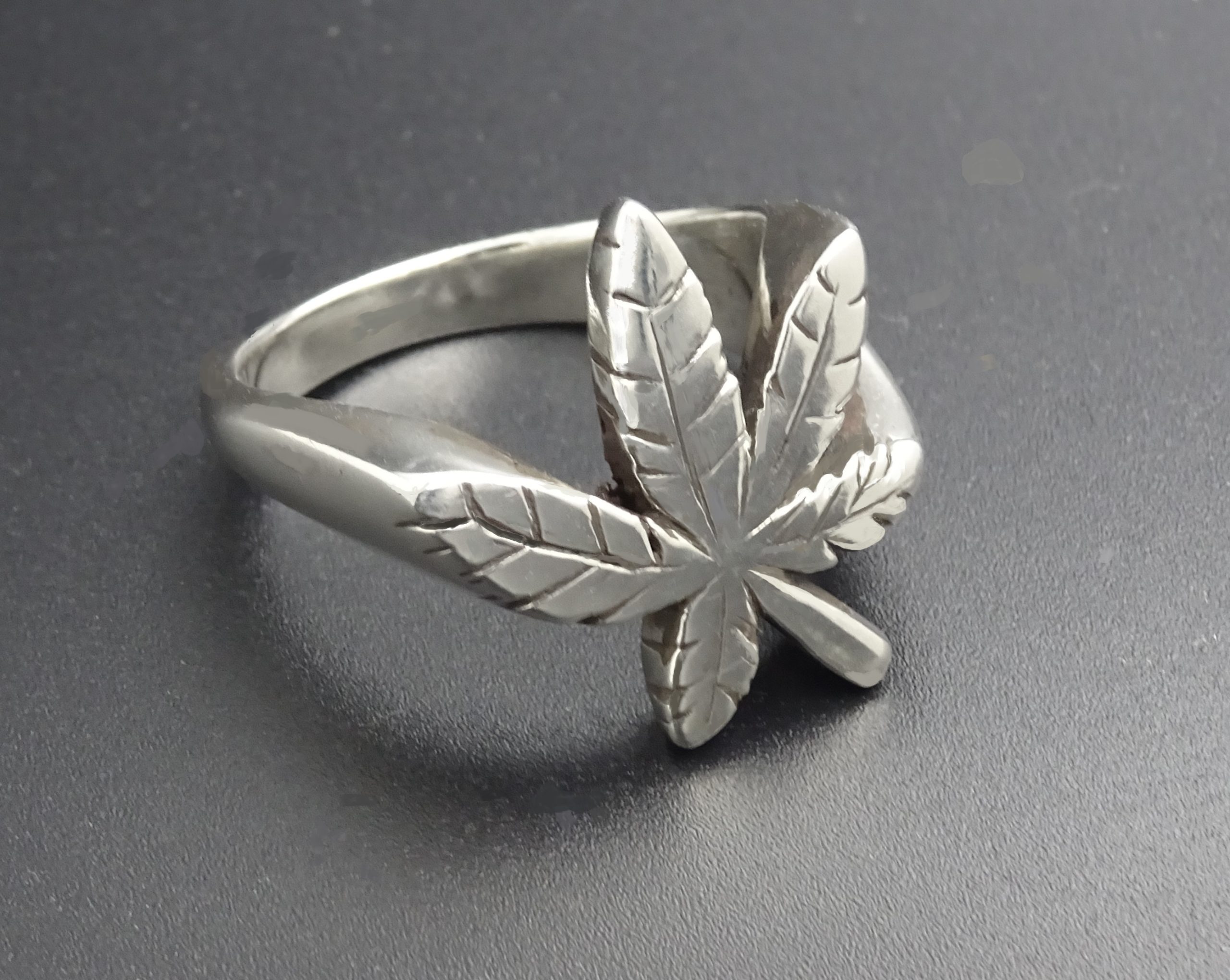 THIS IS A STERLING SILVER NATURAL CANNABIS LEAF RING.