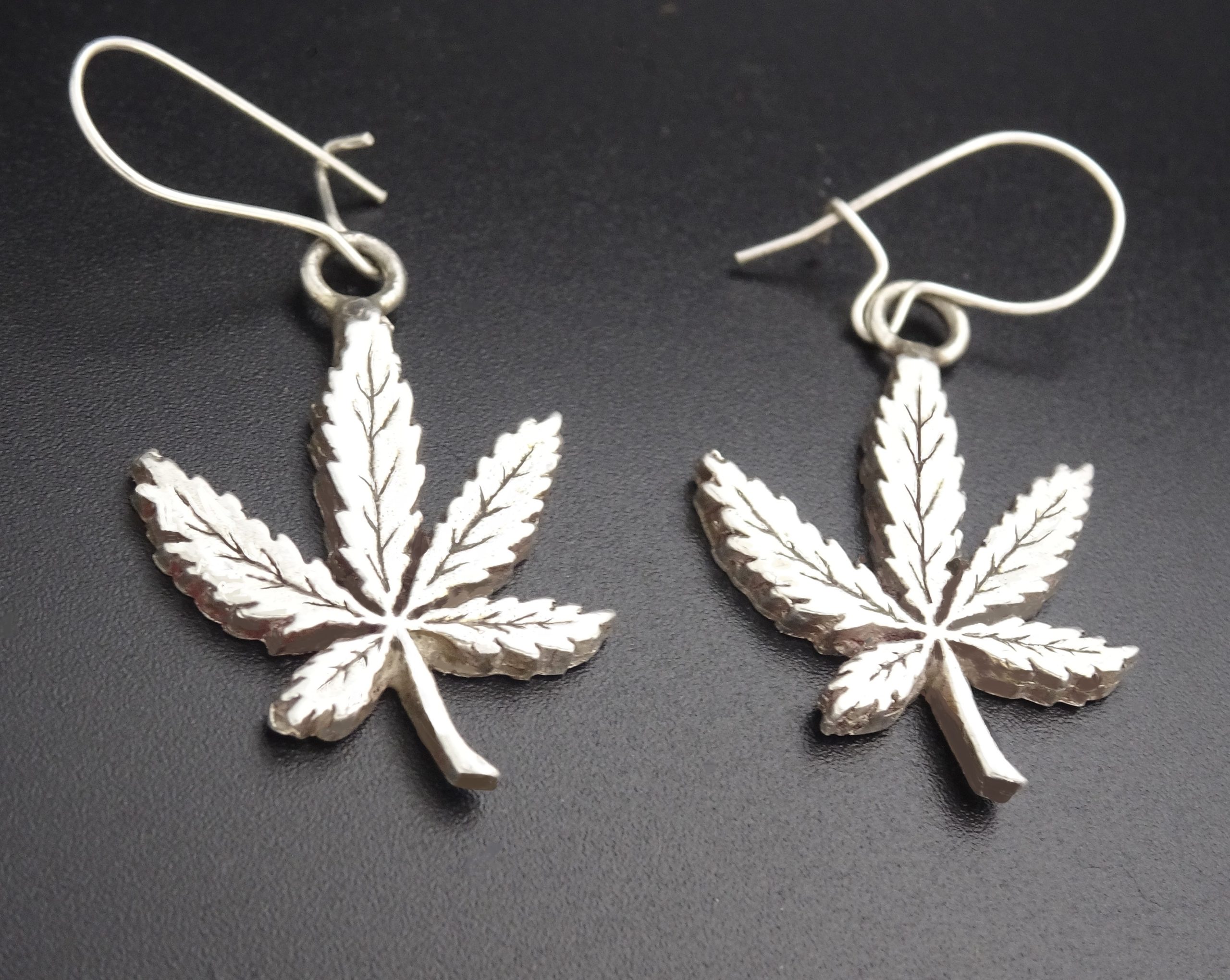 STERLING SILVER CANNABIS LEAF EAR RINGS WITH WIRES