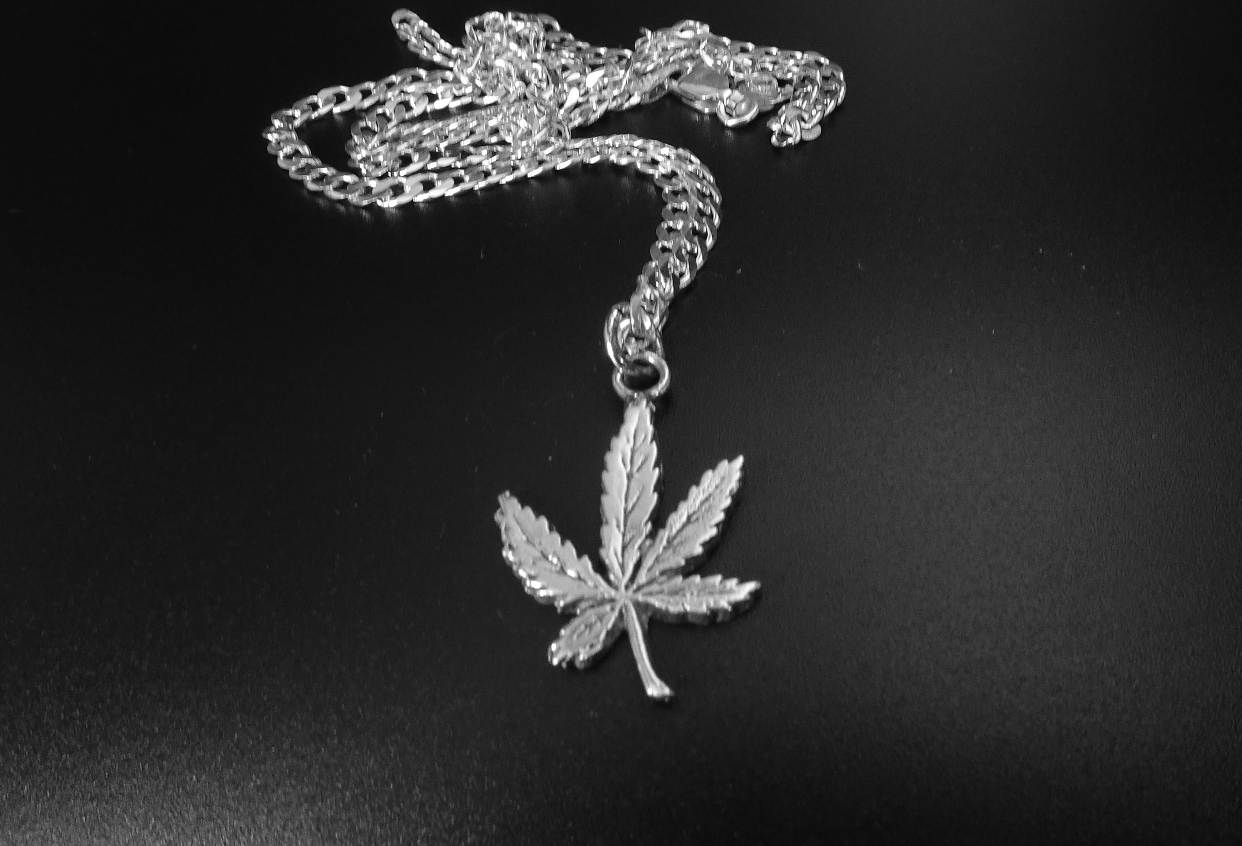 STERLING SILVER CANNABIS LEAF-PENDANT.WITH 18 INCH STERLING SILVER CHAIN